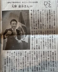 O jornal Mainichi publicou reportagem sobre o CCBJ Awards Person of the Year. O homenageado foi o CEO da Daiso Brasil, Keisuke Ohno.
